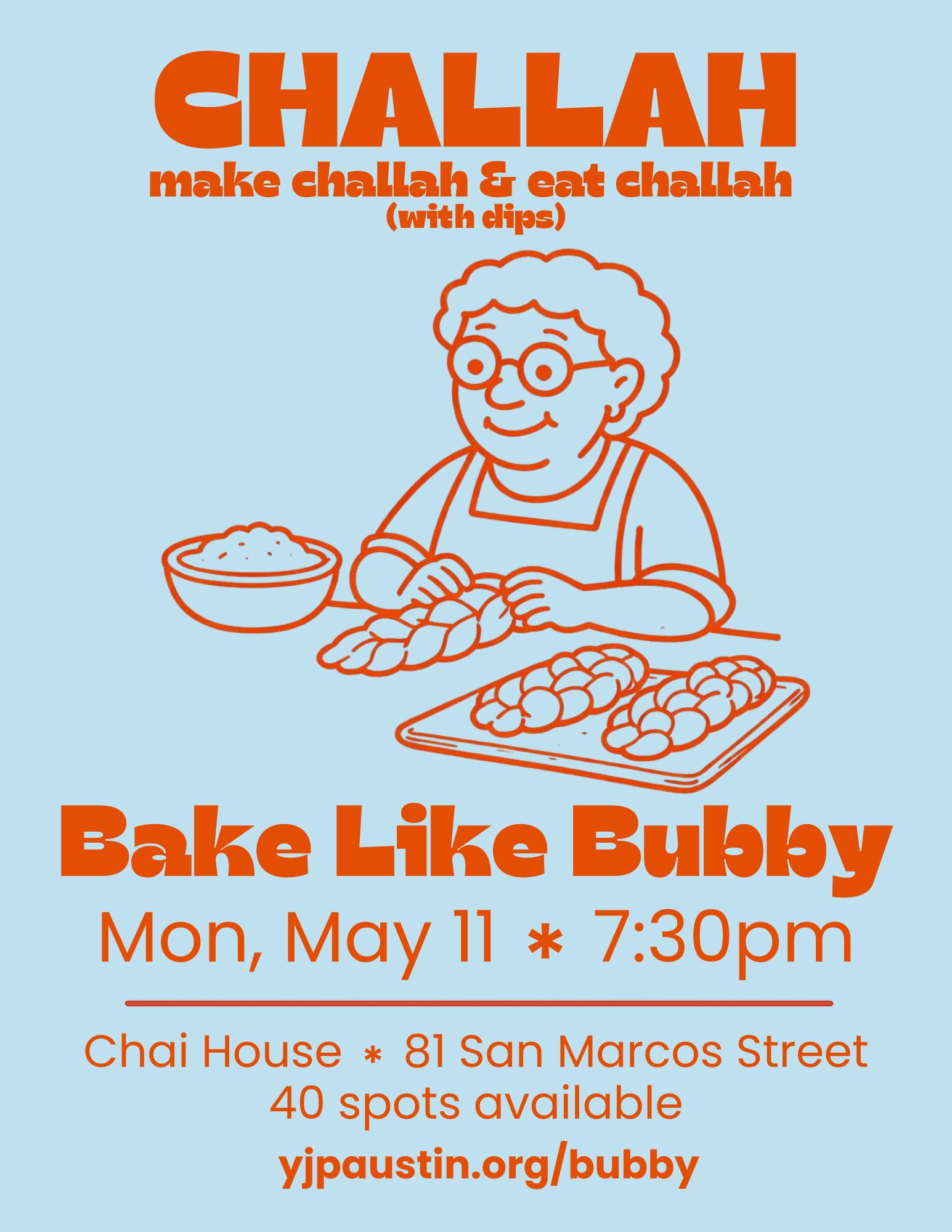 Get ready to roll up your sleeves and "Bake Like Bubby" – bringing young adults together to bake classic Jewish foods. From traditional challah to rugelach, it's a chance to learn, laugh, and share in the joy of baking with friends.